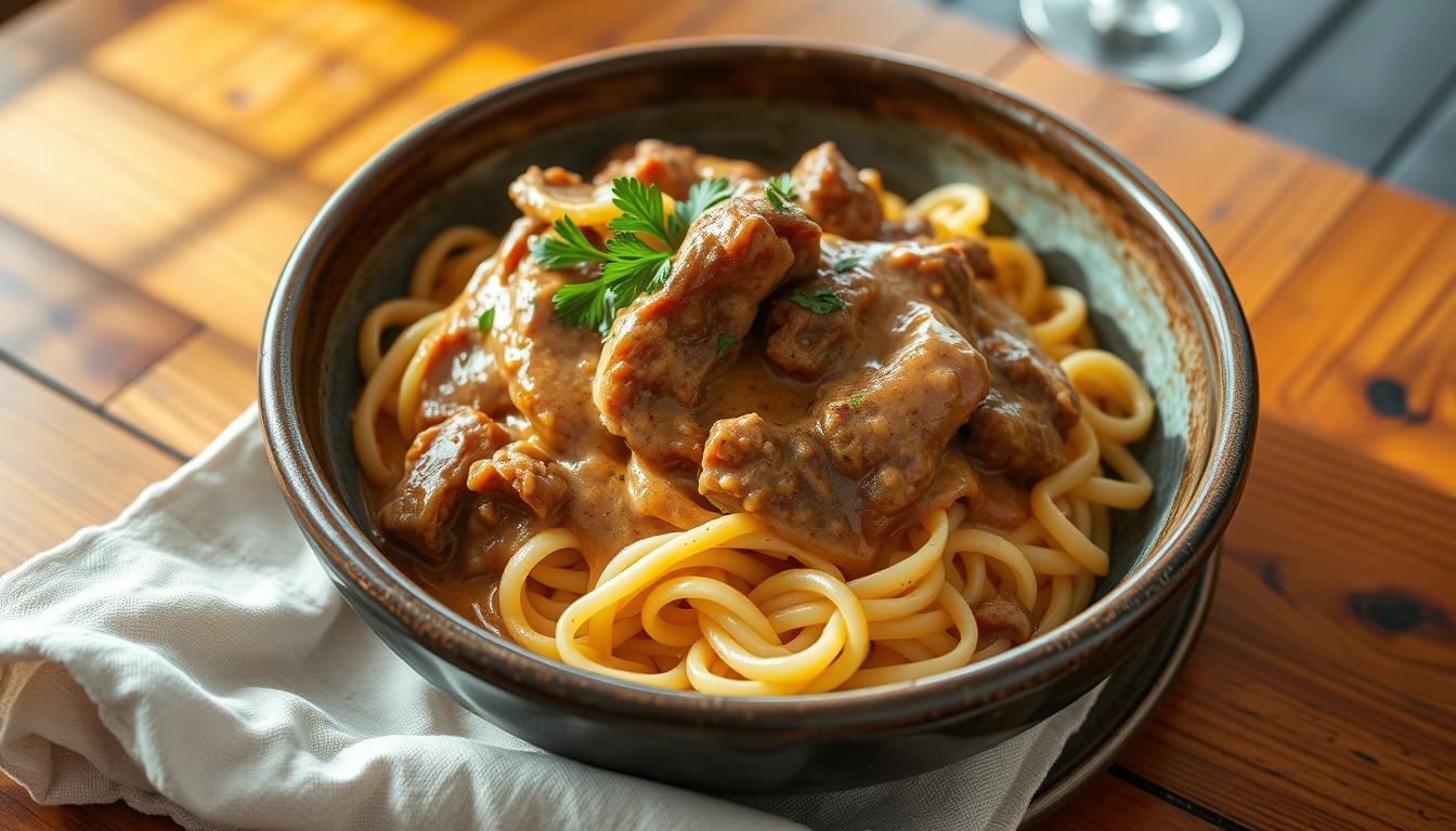 Il Beef Stroganoff è più di un piatto. È una ricetta tradizionale piena di storia e gusto. Ogni ingrediente, come la carne di manzo e i funghi freschi, aiuta a creare un’esperienza unica. Questa celebra la cucina russa e le sue influenze globali.