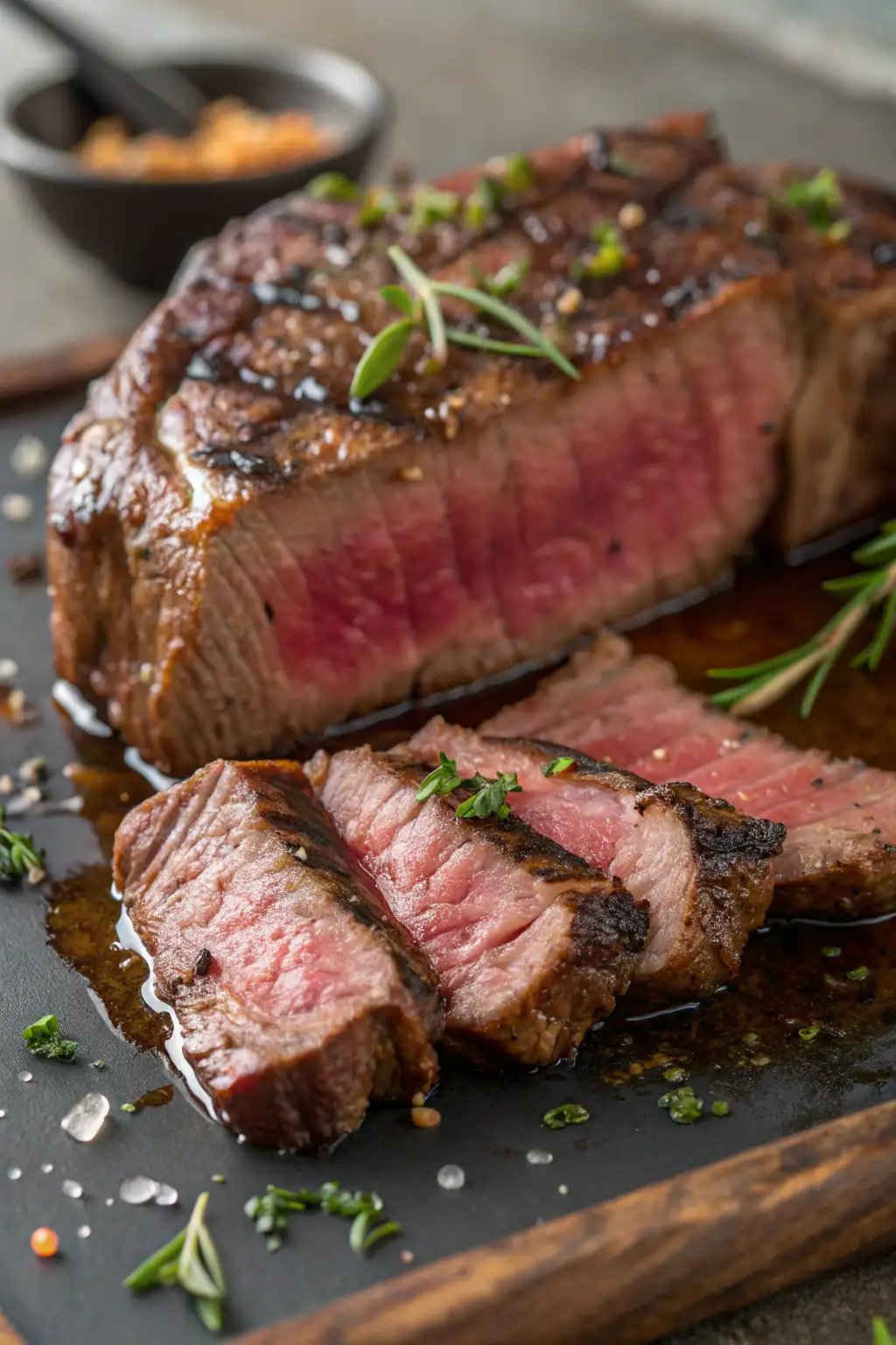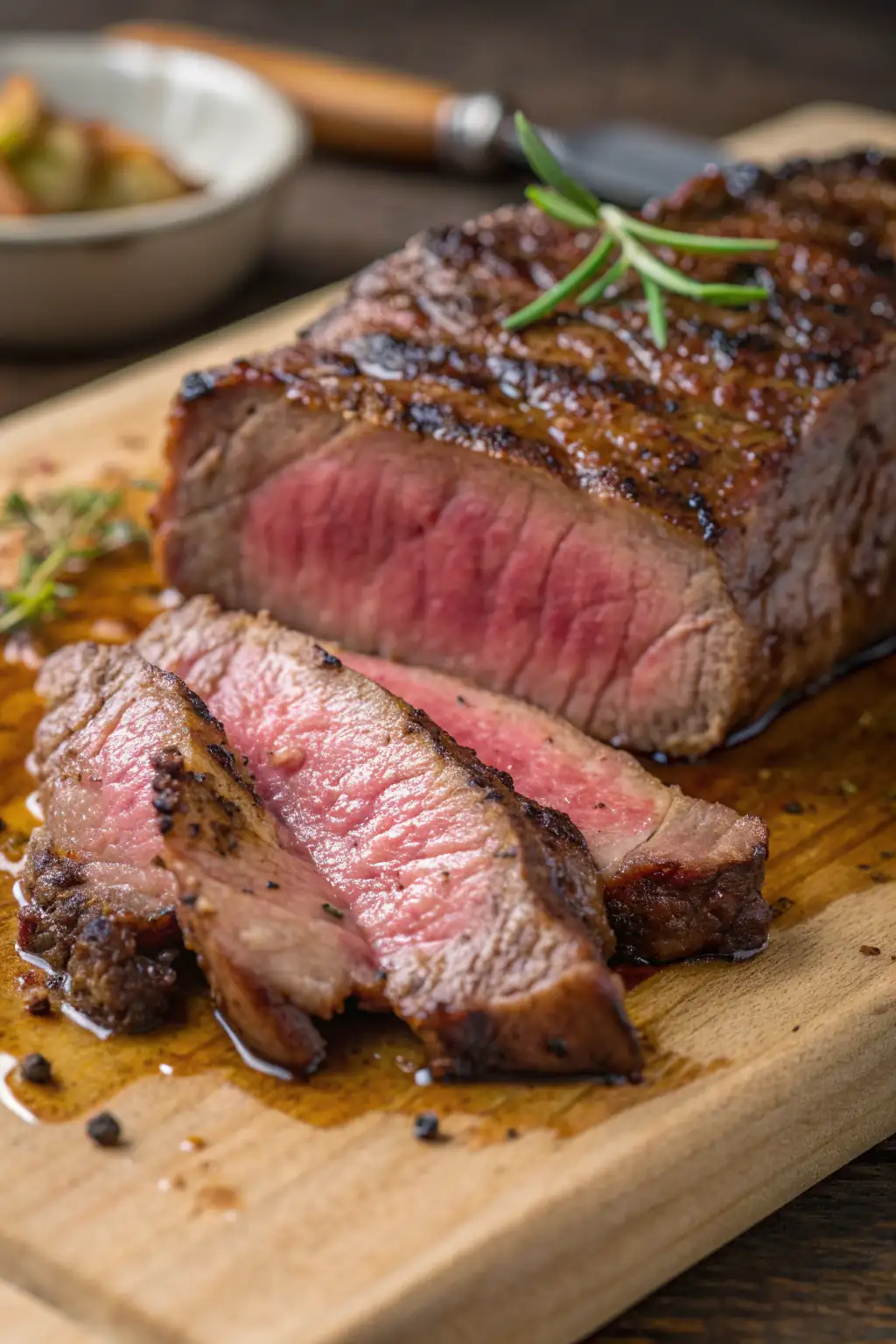 - Rimuovi le bistecche e lasciale riposare per 5 minuti prima di affettarle e servirle.