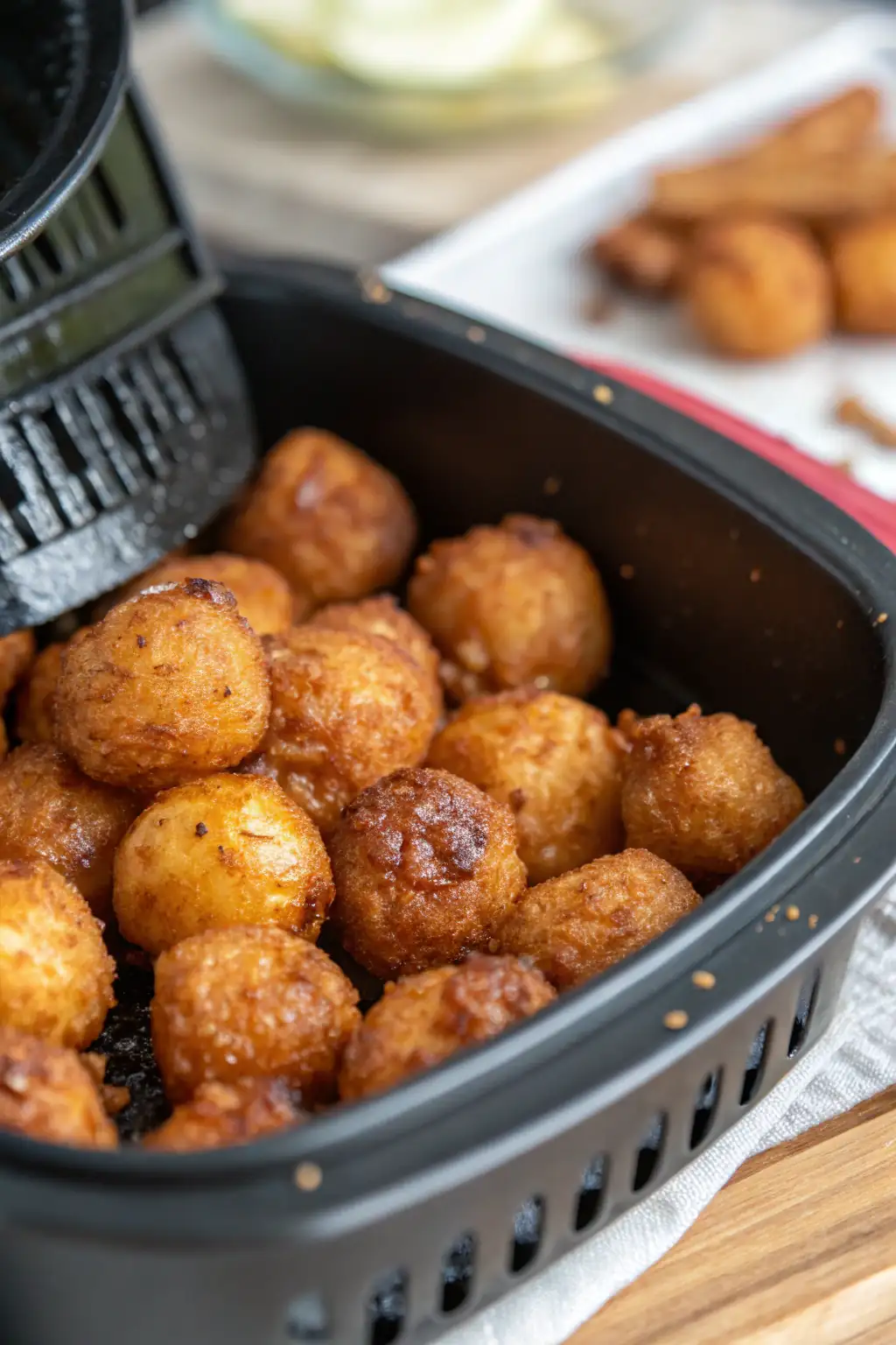 - Friggere ad aria per 15-20 minuti, scuotendo il cestello a metà cottura per una cottura uniforme, fino a quando non sono dorate e croccanti.