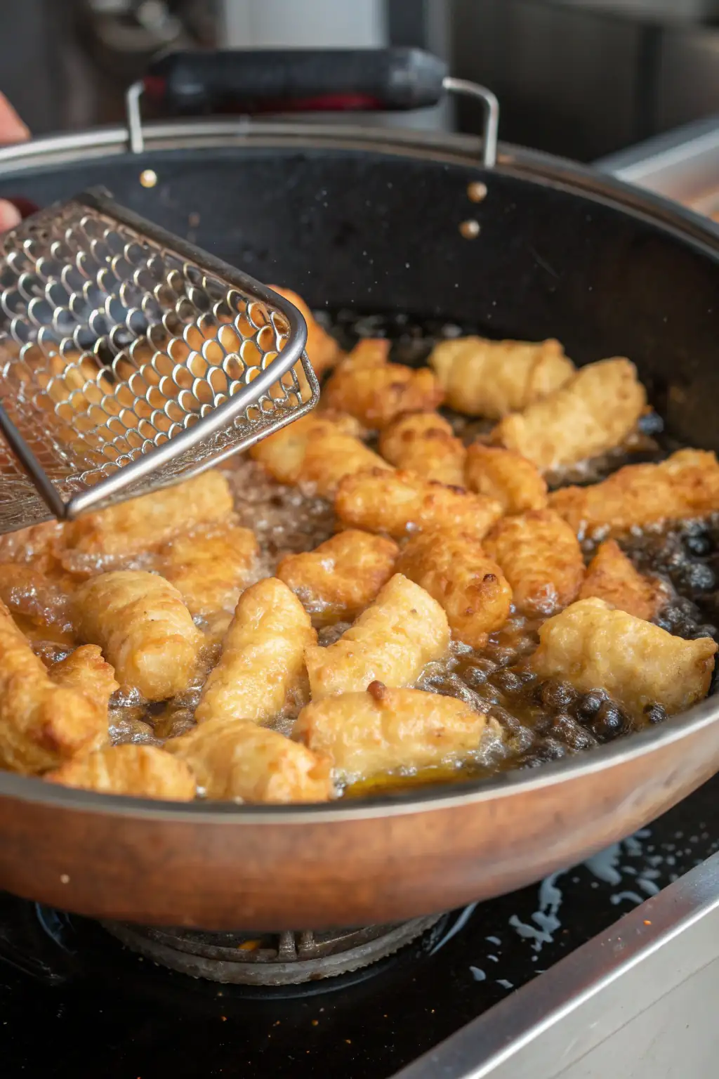Scuotere il Cestello: Scuotere il cestello a metà cottura aiuta a ottenere una croccantezza uniforme su tutti i lati dei crosne.