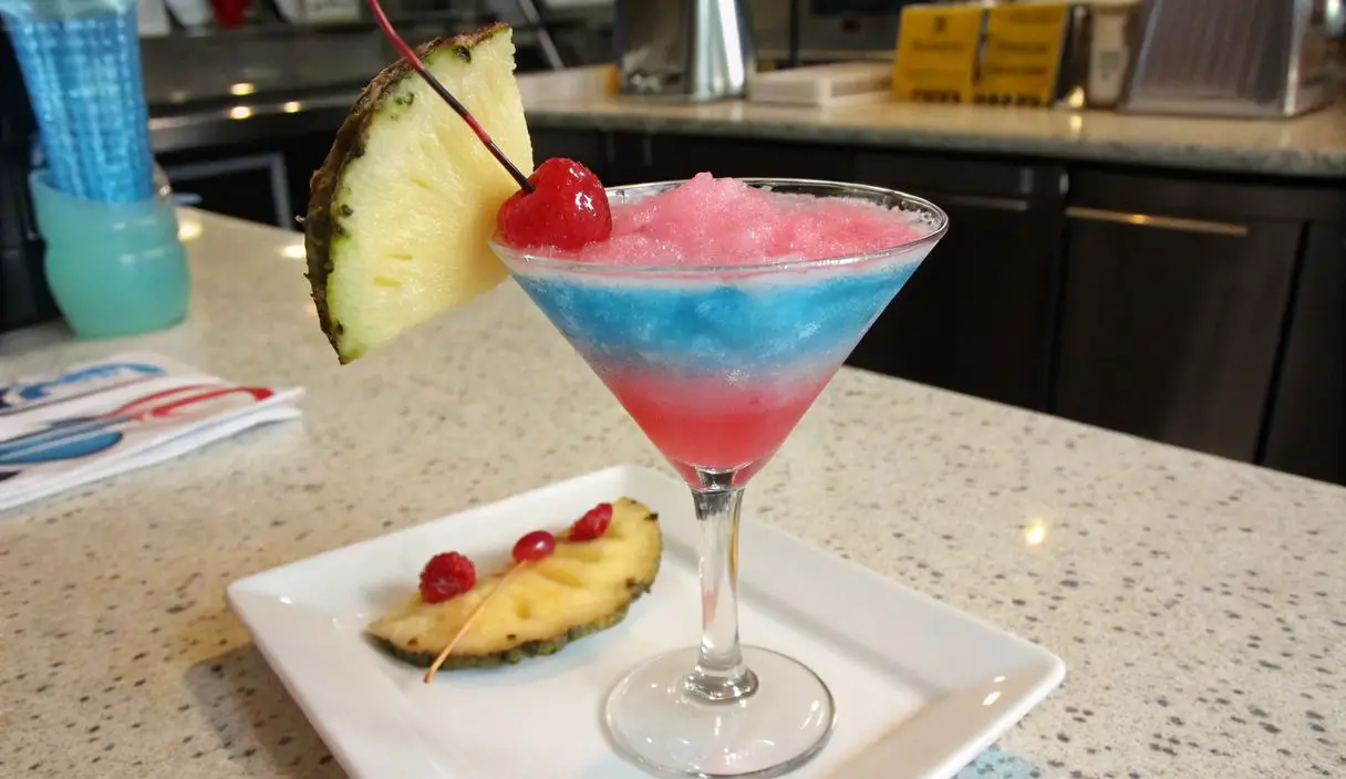 - Servi e Goditi: Decora i tuoi Frozen Miami Vice con una fetta di ananas sul bordo del bicchiere, una fragola fresca tagliata, una ciliegina al maraschino o una piccola ombrellina colorata per un tocco festoso. Inserisci una cannuccia e servi immediatamente. Preparati ad un’esplosione di sapori che ti trasporterà direttamente sotto il sole dei tropici!