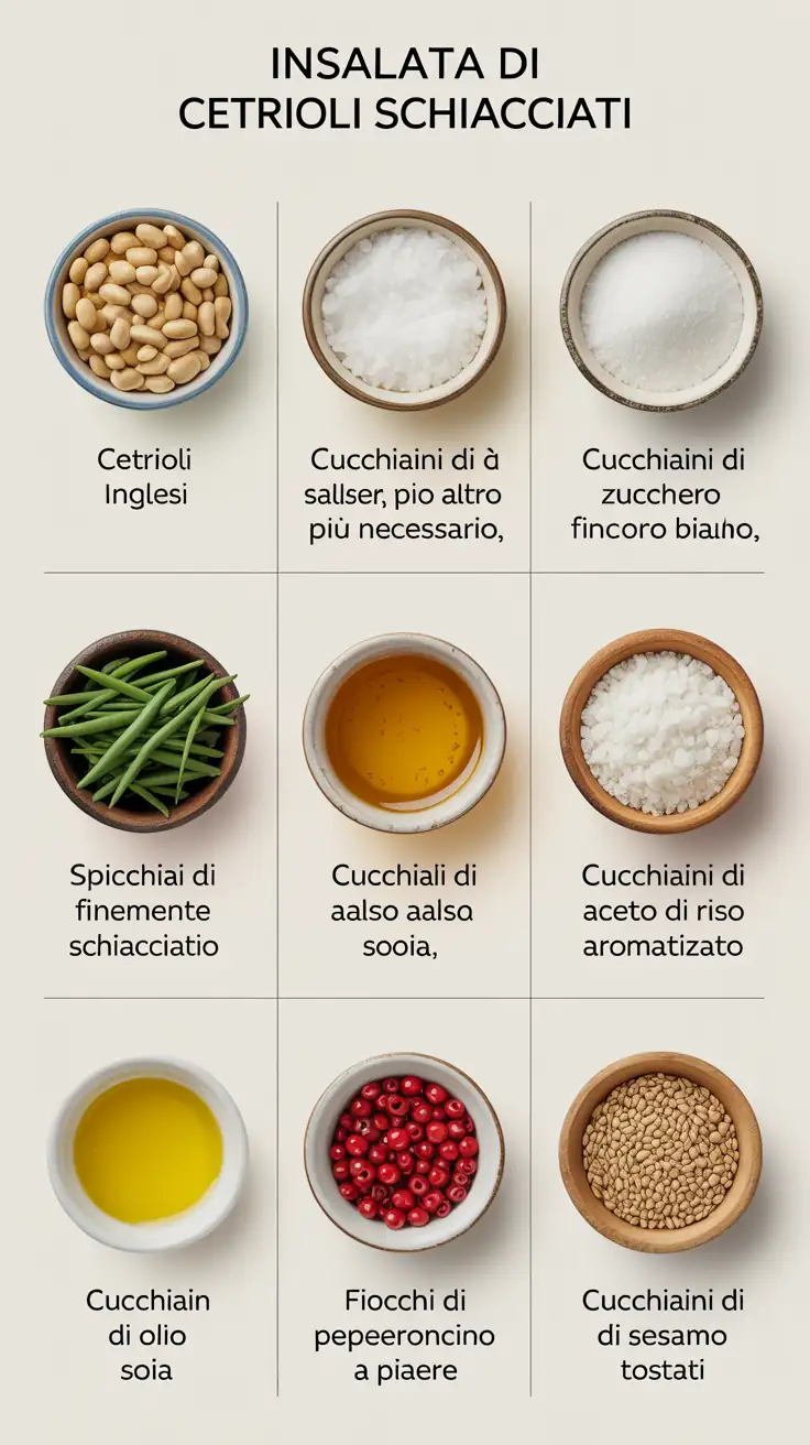 L’insalata di cetrioli schiacciati è unica per vari motivi che la distinguono da altre insalate. Innanzitutto, la tecnica di schiacciamento dei cetrioli permette ai succhi naturali di mescolarsi con gli altri ingredienti, creando un profilo di sapore più ricco e complesso. Questo metodo, a differenza del taglio tradizionale, porta a una consistenza diversa che è sia croccante che succosa. In secondo luogo, l’uso di ingredienti come l’aceto di riso e l’olio di sesamo aggiunge una nota esotica e aromatica che trasporta i sapori verso terre lontane. Inoltre, la combinazione di sale e zucchero aiuta a bilanciare i sapori, esaltando la naturale dolcezza dei cetrioli e aggiungendo una piacevole nota salina. L’aggiunta di aglio e fiocchi di peperoncino rosso conferisce un pizzico di vivacità e calore al piatto, rendendolo perfetto per chi ama un tocco piccante. Infine, i semi di sesamo tostati non solo arricchiscono il piatto con una croccantezza aggiuntiva, ma apportano anche un profondo sapore di nocciola che completa armoniosamente il tutto. Questa ricetta è un esempio perfetto di come ingredienti semplici possano essere trasformati in un piatto straordinario attraverso tecniche e abbinamenti sapienti.