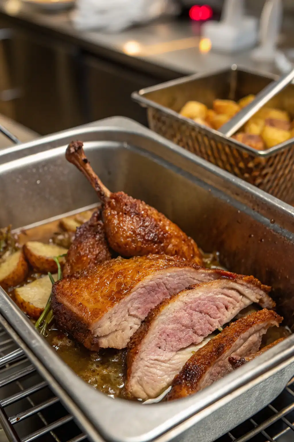 Affettamento e Servizio: Affetta i petti d’anatra in fette sottili e servili subito per apprezzare appieno la fragranza e la consistenza.