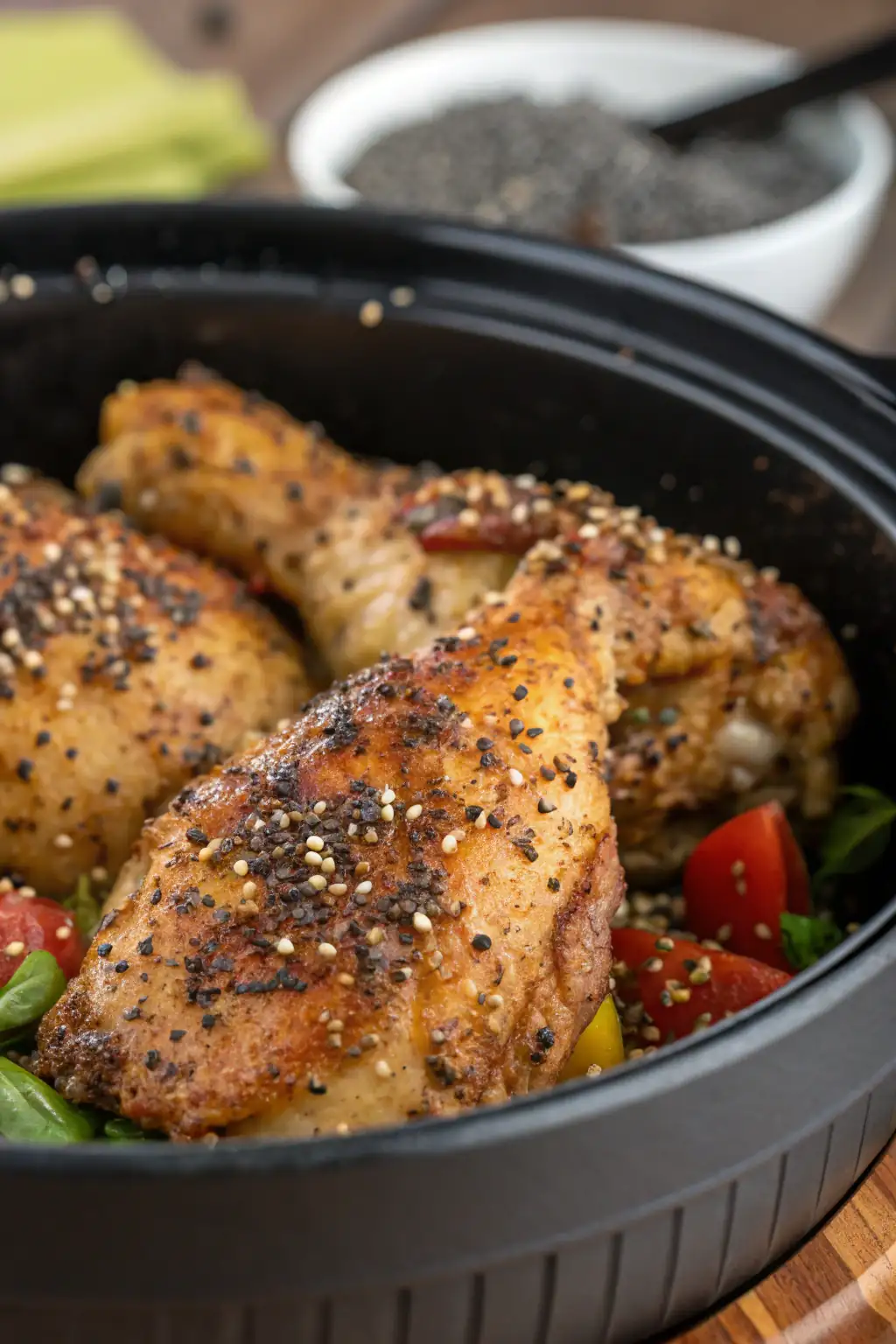 Il Pollo con Semi di Chia in Friggitrice ad Aria non è solo un piatto delizioso, ma una celebrazione di sapori e tecniche che lo rendono unico. Primo, l’uso della friggitrice ad aria permette di cucinare il pollo in modo sano, riducendo l’uso di olio e mantenendo i sapori intensi e autentici. Secondo, i semi di chia non solo aggiungono una croccantezza inaspettata, ma sono anche ricchi di nutrienti essenziali come omega-3, fibre e proteine. Terzo, la combinazione di spezie come paprika, aglio e cipolla in polvere crea un mix aromatico che esalta il sapore del pollo. Quarto, la semplicità della preparazione rende questa ricetta accessibile a chiunque, indipendentemente dal livello di esperienza culinaria. Infine, il piatto si adatta facilmente a varianti e personalizzazioni, permettendo a ciascuno di sperimentare e trovare la versione perfetta per il proprio palato.