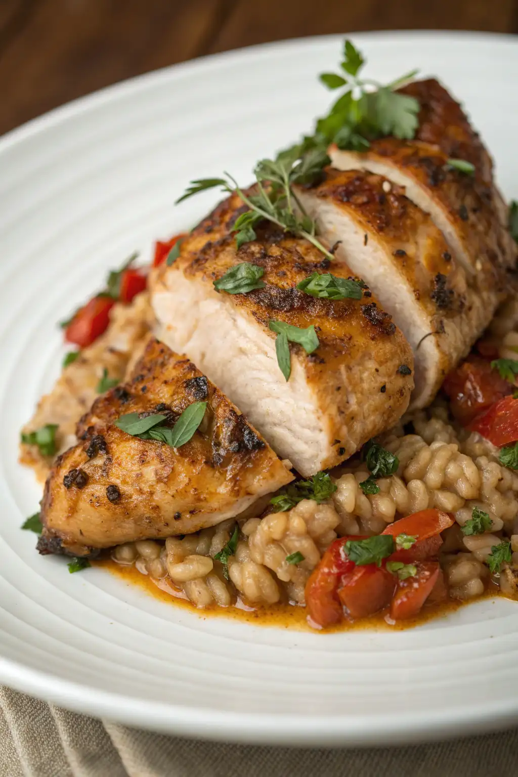 Riposo Dopo la Cottura: Lascia riposare il pollo per qualche minuto prima di tagliarlo. Questo assicura che i succhi rimangano all’interno, mantenendo il pollo succoso.