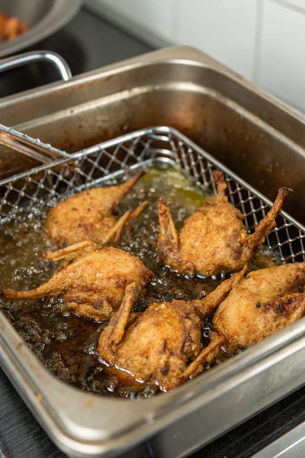 Preriscaldare Sempre la Friggitrice: Questo passo assicura che le quaglie inizino a cuocere immediatamente in un ambiente caldo, risultando in una pelle più croccante.