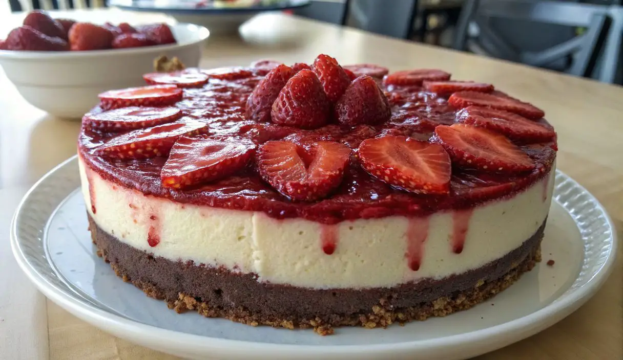 Un cheesecake Red Velvet alla fragola unico e delizioso senza glutine, ispirato ai sapori tradizionali.
