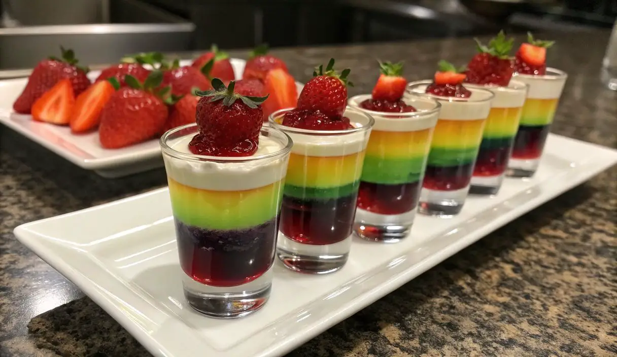 - Assembla: Versa delicatamente lo strato bianco sopra lo strato rosso solidificato nei bicchierini. Rimetti in frigorifero a solidificare per almeno 1 ora.